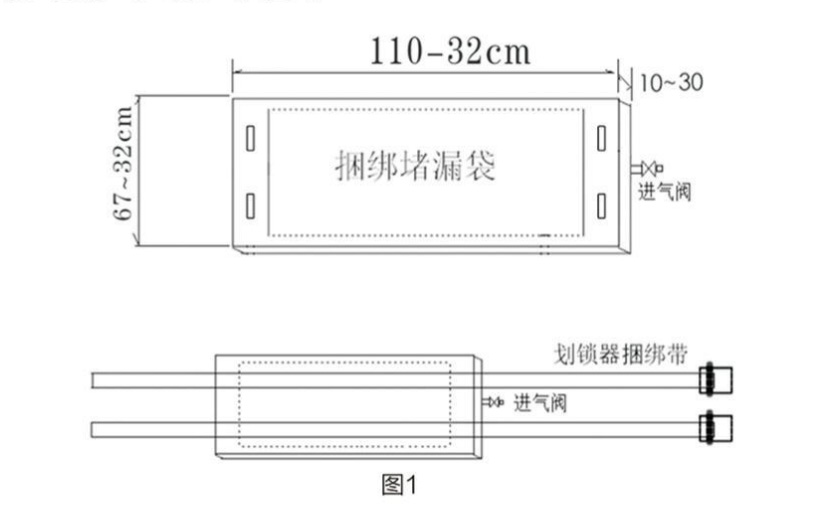 應用在金屬、塑料、玻璃鋼材質(zhì)的各類(lèi)管道、罐車(chē)、容器罐的砂眼、焊縫等腐蝕穿孔跑、冒、滴、漏類(lèi)泄漏,或人為損壞的泄漏,包扎鎖緊后充氣堵漏應急之用。(見(jiàn)圖1)